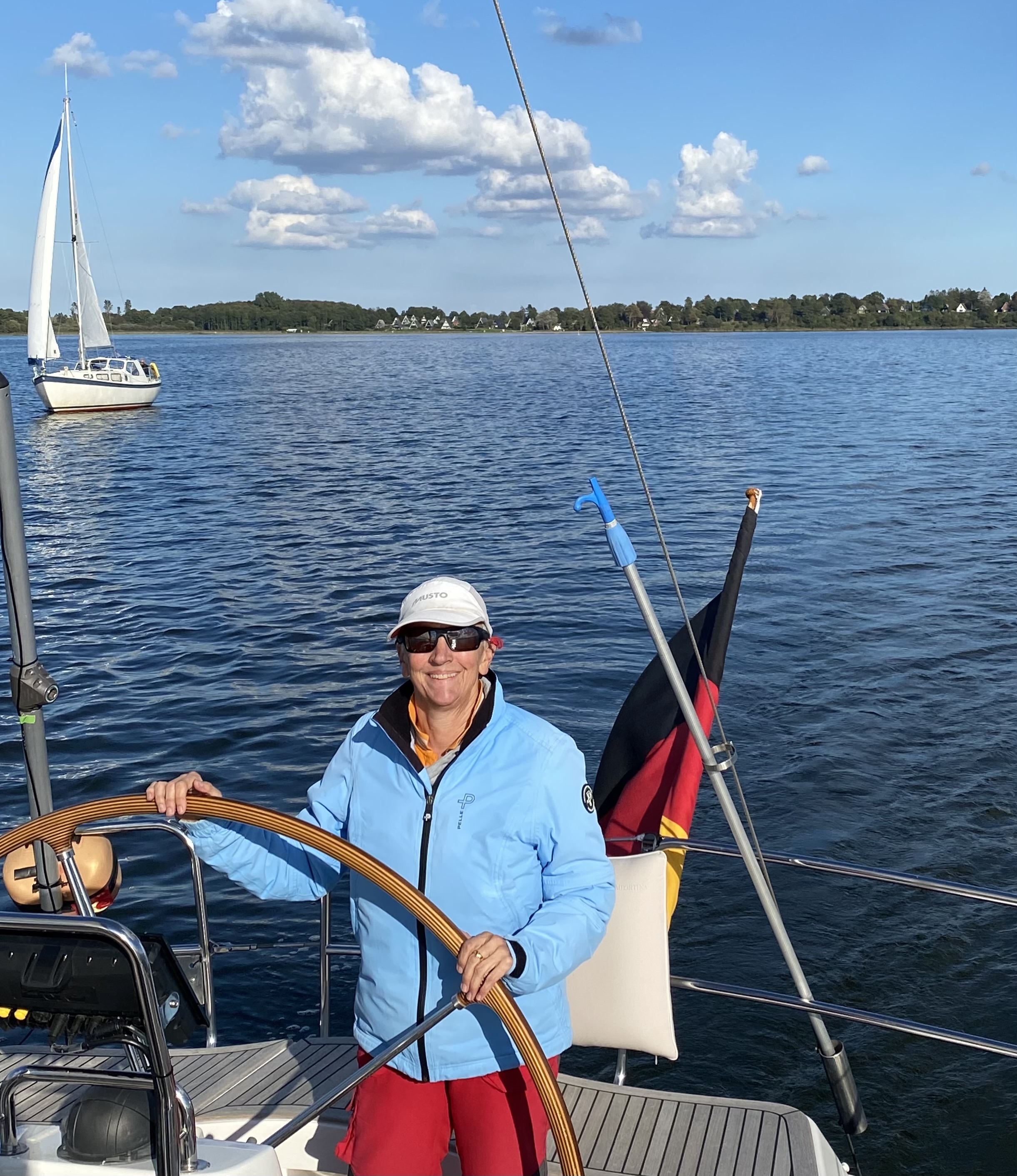 Da wir am Morgen noch hin und her überlegt haben, ob wir wirklich segeln wollen, starten wir erst gegen 11.30h. Nach 6 Stunden haben wir die 43 Seemeilen hinter uns und kommen in unserem Heimathafen Maasholm an. Die ganze Zeit konnten wir uns sehr sicher fühlen, da wir fast die ganze Strecke vom Küstenwachschiff „Seeadler“ begleitet wurden. Deren Tagesaufgabe war wohl mit unserem Törn deckungsgleich; ist mussten offensichtlich die deutsch-dänische Grenze kontrollieren.