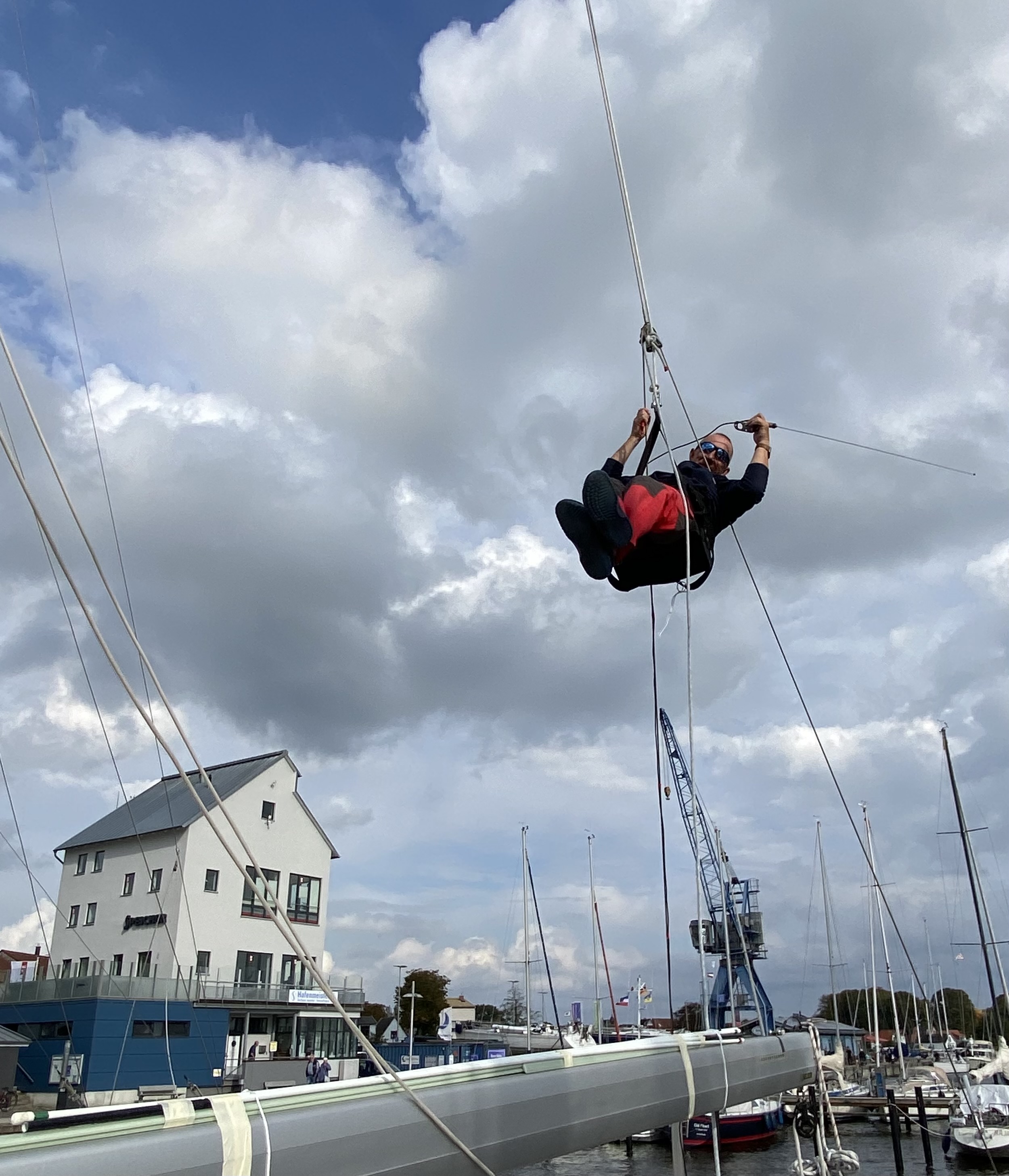 Es ist ein spektakulärer Ritt. An der Kreuz mit deutlich über sieben Knoten und anfänglich recht hohen Wellen. Es ist ein wunderbarer Segeltag, der unheimlich viel Spaß macht. Nach 4,5h sind die 34 SM erledigt.